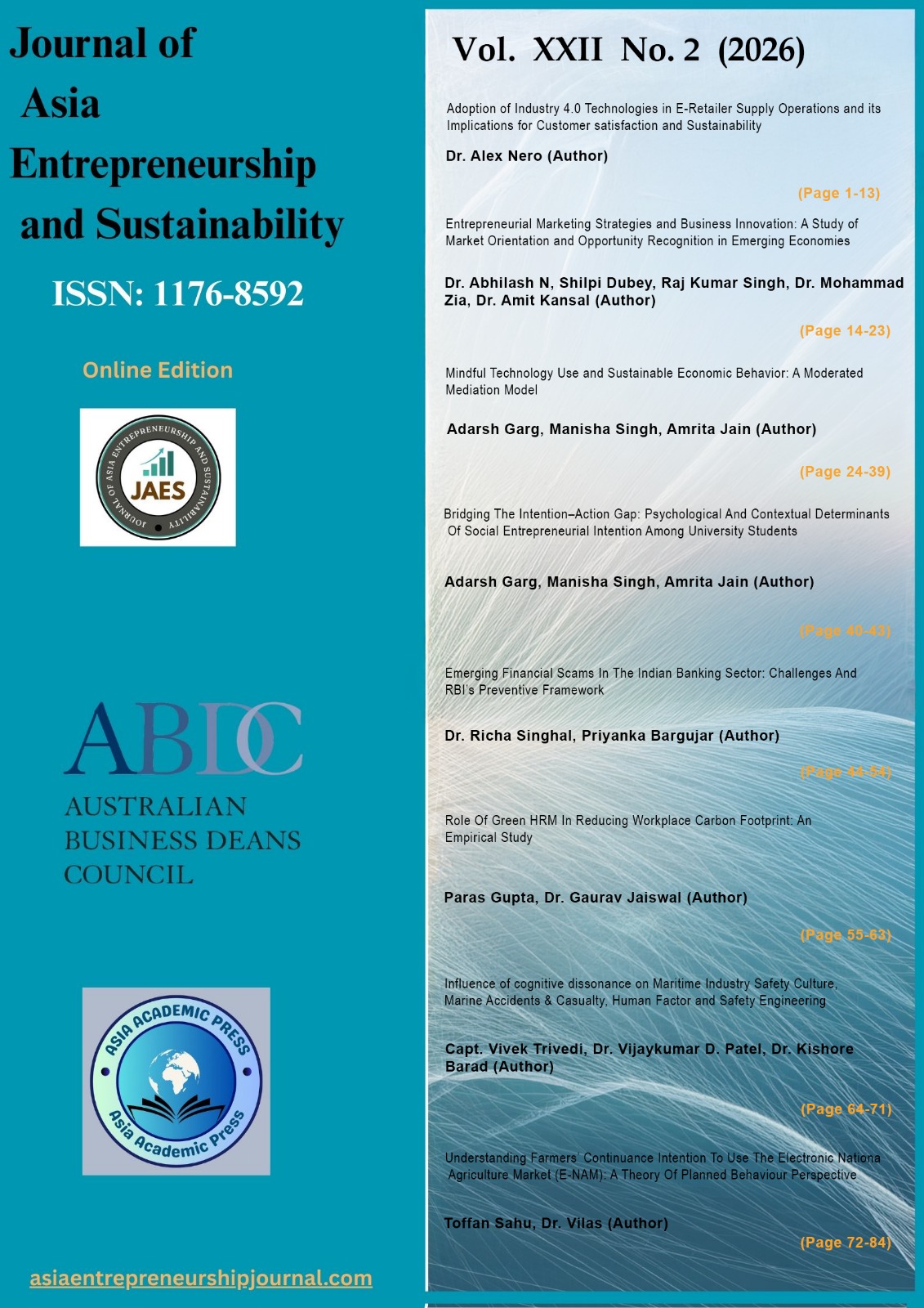 Journal of Asia Entrepreneurship and Sustainability (JAES) is an international, peer-reviewed, open-access academic journal focused on advancing research at the intersection of entrepreneurship and sustainable development across Asia.